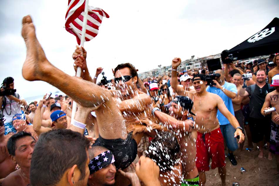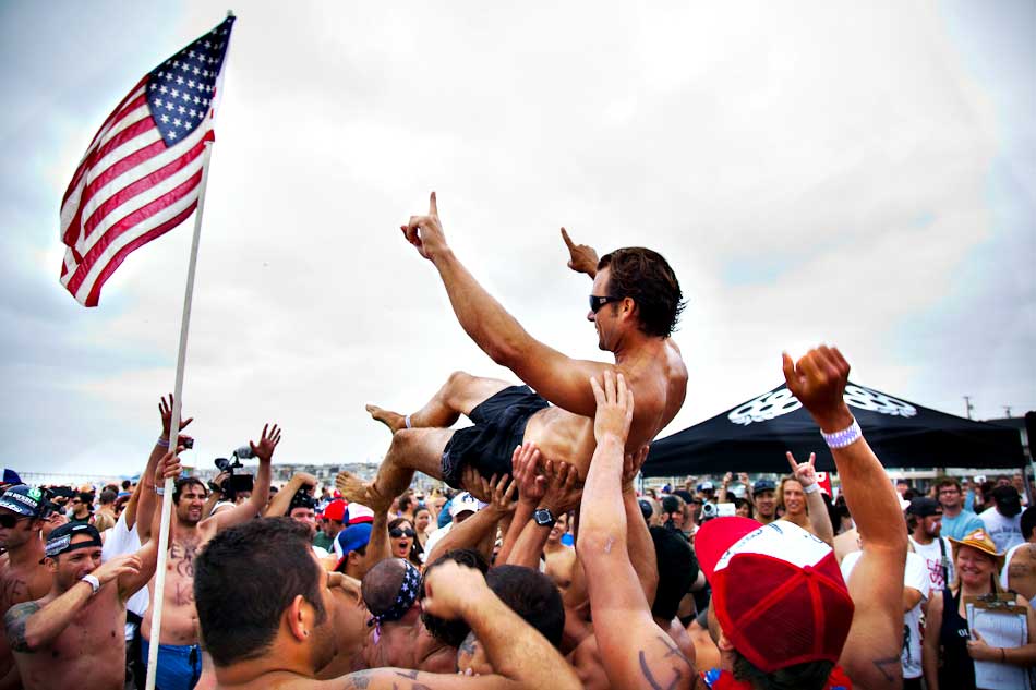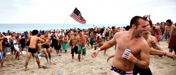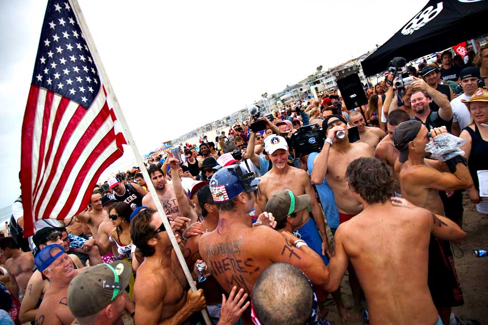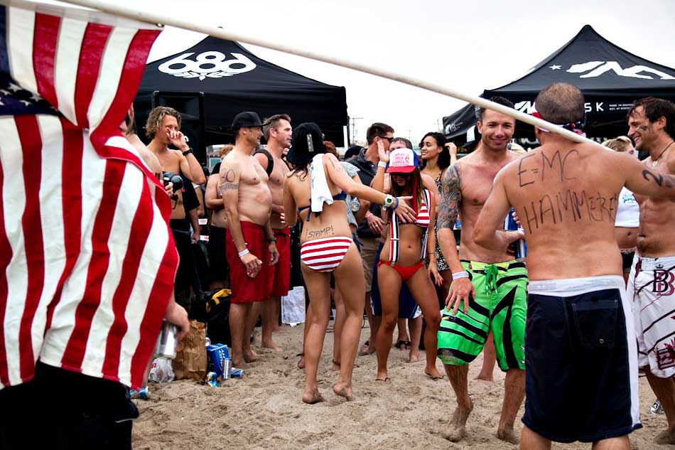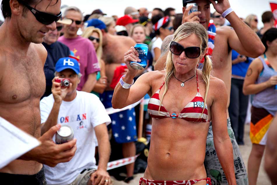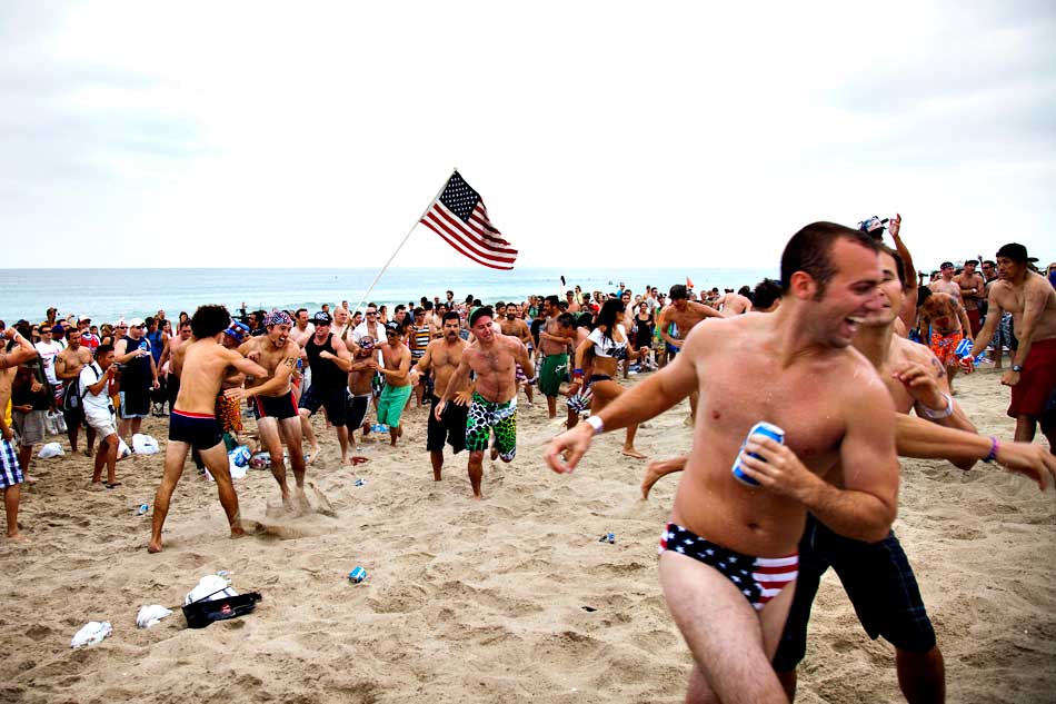 Every Fourth of July about 100 participants partake in what has become a Hermosa Beach Fourth of July Tradition. First you paddle out a mile, than you run a mile, then you drink six beers. If you don’t throw up and you do it faster than everyone else… you win!