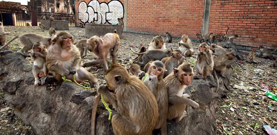 In Lopburi, a small town about three hours north from Bangkok, there is a town overrun with monkeys. Not just a few monkeys or a hundred monkeys but thousands of little furry humanoids. Wrecking and pulling on telephone wires, fighting each other, looting shop fronts, stealing my fried chicken, these were some of the craziest monkeys I’ve dealt with. Not that ive dealt with many monkeys but still…