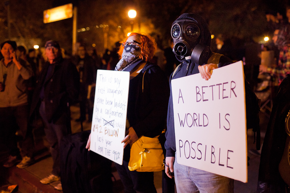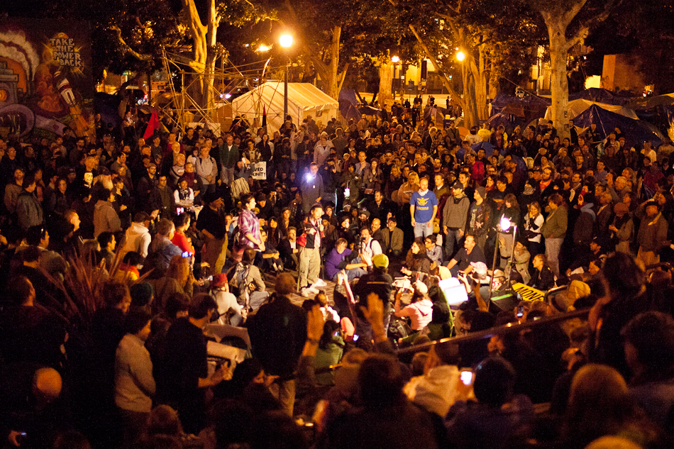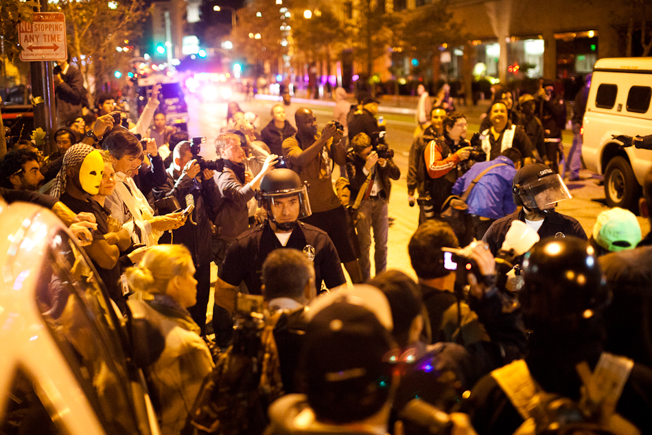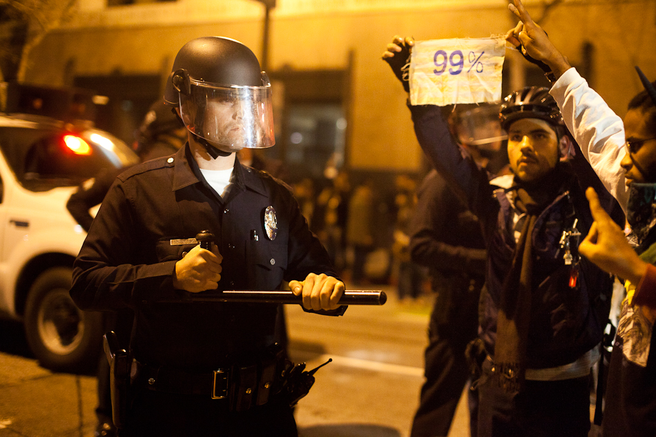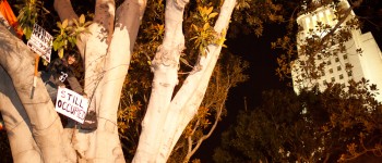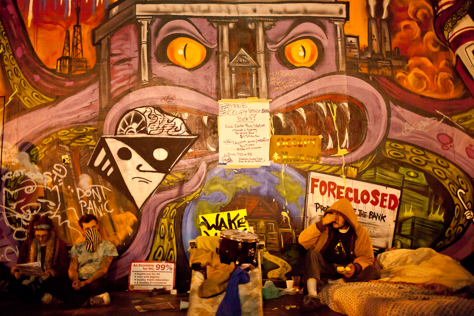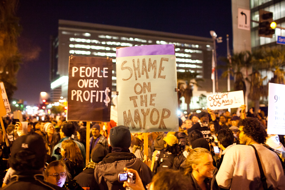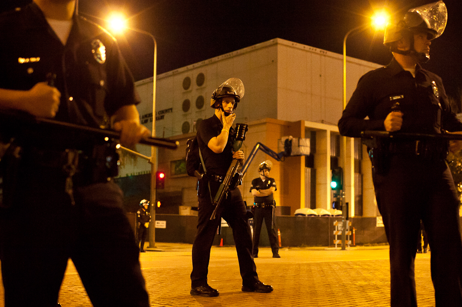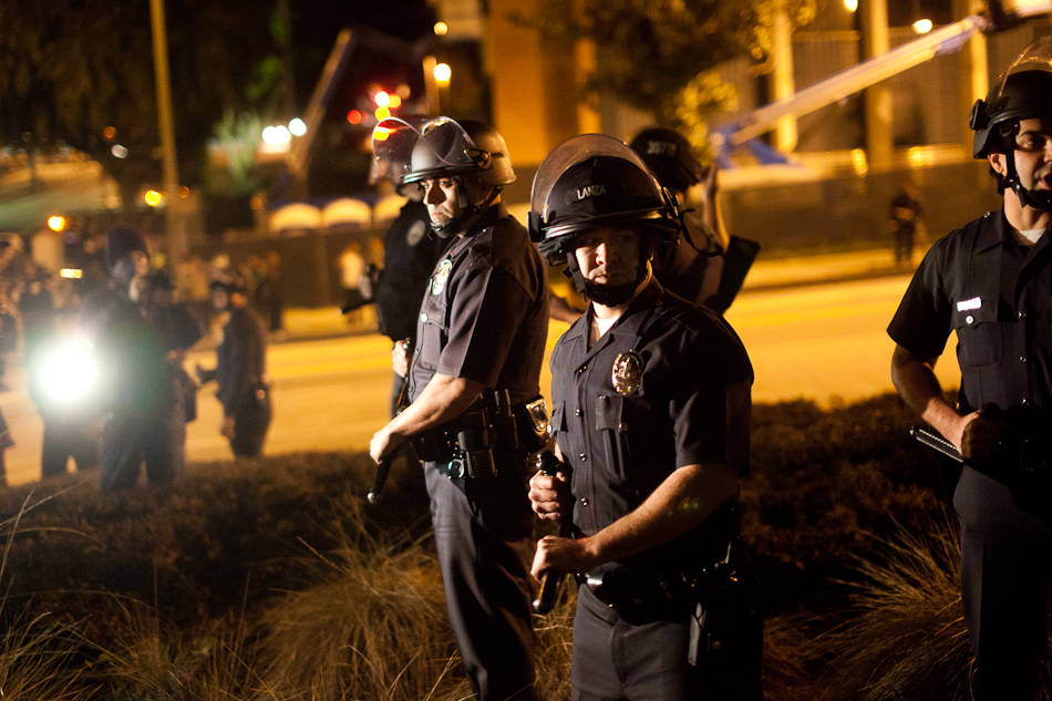 I went down to City Hall last Monday to visit the LA occupy camp set up there. It was the night that the mayor’s eviction notice was supposed to take effect and the couple hundred people staying in the park would need to pack up and go. Although aimed at clearing the park, the eviction notice gathered in hundred of people filling the park around city hall and ultimately flooding out into the street. The LAPD did indeed show up, in quite large numbers, and I have to say I was quite impressed with how both side handled the whole situation. Neither side was provoking or overstepping bound on what ended up being a pretty tense situation. The violence and disruption that has affected other factions of the OWS movement seemed somewhat anticipated but the police held to their promise that they were there to maintain safety. They even thanked people for protesting over their loudspeaker. It’s kind of a weird situation photographing these kind of things because although you don’t want to see people get hurt, a part of you anticipates and wants action and drama to be able to shoot it. I even had my wrong gear facemask with me in case of any tear gas or pepper spray. In the end, I ended up leaving around 200am because i was starving and had to go occupy my kitchen.